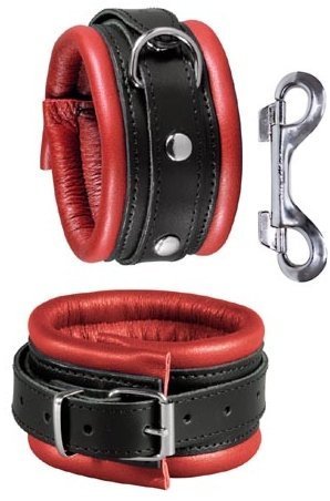 Profi Fesselset Mit D Ring. Farbe: Schwarz/Rot. Material: Rindsleder.
